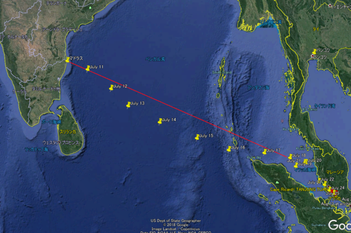 それにしても2日立て続けに大洋上で他の船舶と遭遇するとは、いささか想像を超える事実である。考えられるのは、インドから東(マラッカ)へ向かう、あるいはマラッカからインドへ向かう航路としてニコバル島が良い目印で、東西からの船舶の航路として存在していたのであろう。