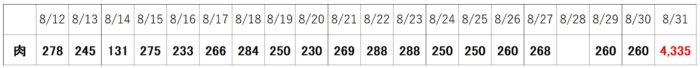 そこで各地から出航した時の牛肉や水の積載量を下記の表にまとめて比較してみた。