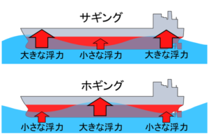 帆船時代の木造船はこれに悩まされたようだ。そこで陸地にボートを送り、大量に材木を伐採して上方に湾曲変形したKeel竜骨を補強して船のバランスを直す作業をしたと思われるが、帆船時代のHogging修正作業の詳細は文献にも残っておらず詳細は分からない。 一方船上では製縄手Rope makerを先頭に 総員が駆り出されて古いロープをほぐしてマイハダ作りに行った。