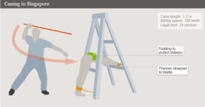 ちなみに、私がシンガポール駐在当時、アメリカ人のハイティーンの少年がいろんな車にペイントスプレーをかけるという事件が起こった。シンガポールでは車を1台購入するのに数百万円の税金がかかる国である。それだけにこれは重罪と判断され、鞭打ち刑が宣告された。これに対し、当時のブッシュ大統領はこの宣告を外交問題化し、国務省が人道問題ということで精力的に動き、結局この少年はアメリカに追放処分ということになったが、これはシンガポールの鞭打ち刑というのは恐ろしく残虐な行為であるということが世界の常識になっていたからである。