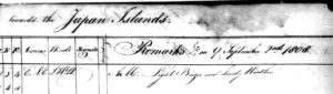 “towards the Japan Islands”と初めて目的地として「日本」が明記されたのだ。スコッツデールが日誌に明記した以上、この目的地は全艦に布告されたと考えて間違いないだろう。マドラス出航後44日目にしてようやくフェートン号はその航海の真の目的を明らかにしたのである。既にマドラスを出て一ヶ月半、さらに未知の目的地を聞いて乗組員たちはどう感じただろうか。彼らの士気を鼓舞するために、私だったらオランダ船を捕獲しその莫大な資産をみんなで分けるのだと演説するだろう。果たしてフリートウッド・ペリュー艦長がそのような演説を打ったどうかは日誌には書かれていない。