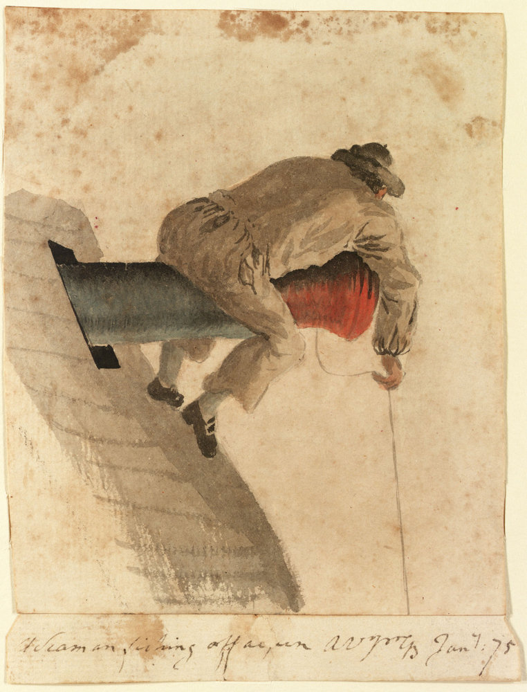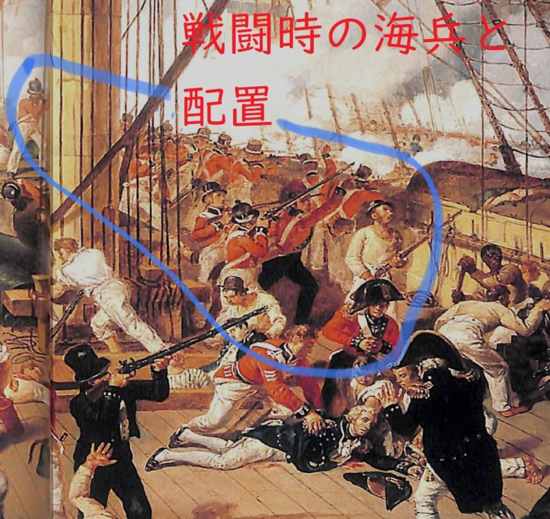 Marine海兵とは、戦闘時には小銃や銃剣などの武器で戦う戦闘専門要員であるが、平時には艦長の命令のもと艦の治安を担当する。乗組員の叛乱Mutinyがあれば、叛乱鎮圧にあたる艦上の警察要員となる。だが海兵であっても酒の誘惑には勝てなかったのだろう。